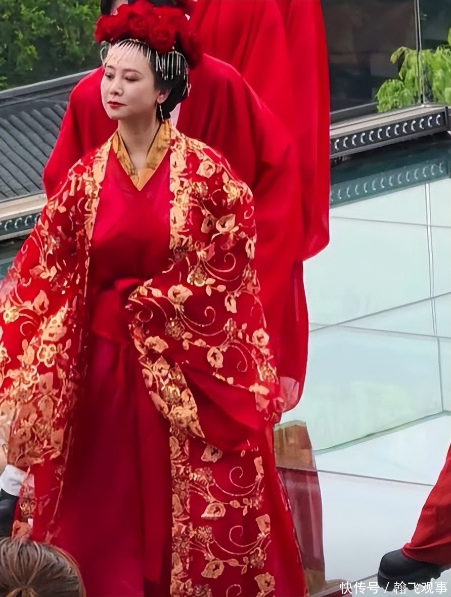 今日翁虹身穿一襲紅色長裙,頭上戴著玫瑰花冠,在東談主群中賣弄風儀。