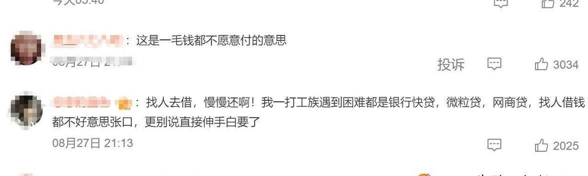 甚而有東說念主平直絕不海涵地說,不念念銷毀就找親戚一又友借款啊,別氣壯理直的來網(wǎng)上“乞討”。