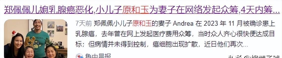掃尾2024年他就因為妻子患上乳腺癌發(fā)起眾籌,其時環(huán)球看在他是鄭佩佩獨一男兒的好看上,共捐贈了5萬好意思元。